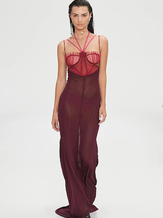 Nensi Dojaka certainly made an impressionable London Fashion Week show with her lingerie-influenced 90s aesthetic collection of sultry sheer gowns, sequined minis, and satin slips with intricate cutouts. Dojaka’s brand of sophisticated sexiness stands out for its refinement, with her red carpet-ready looks a favourite among celebrities including Emily Ratajkowski, Sophie Turner, Emma Corrin, Carey Mulligan and Bella Hadid. The London-based Albanian womenswear designer launched her namesake label in 2017, in the meantime graduating from Central Saint Martins in 2020, presenting with Fashion East and claiming the 2021 LVMH Prize for Young Designers.