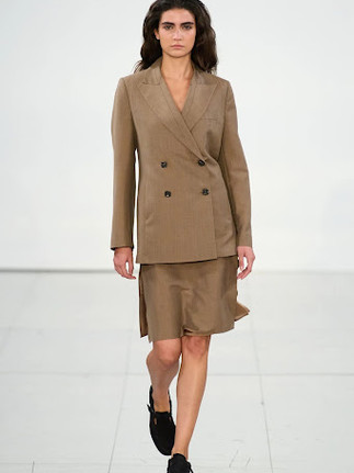 Greek-born womenswear designer Eftychia Karamolegkou kept it cool, calm and sophisticated at London Fashion Week, incorporating elements of classic men's tailoring details and construction into women's garments for an effortless and timeless collection of suit co-ords, satin slips and wide-leg trousers. In 2018 the Central Saint Martins MA graduate Karamolegkou launched the London-based brand EFTYCHIA which strives to remove gender signifiers, reflecting contemporary unadorned femininity. Since being shortlisted for the LVMH prize in 2019, she has been showing at London Fashion Week under the support of the British Fashion Council’s NewGen platform ever since, with each collection growing her popularity.